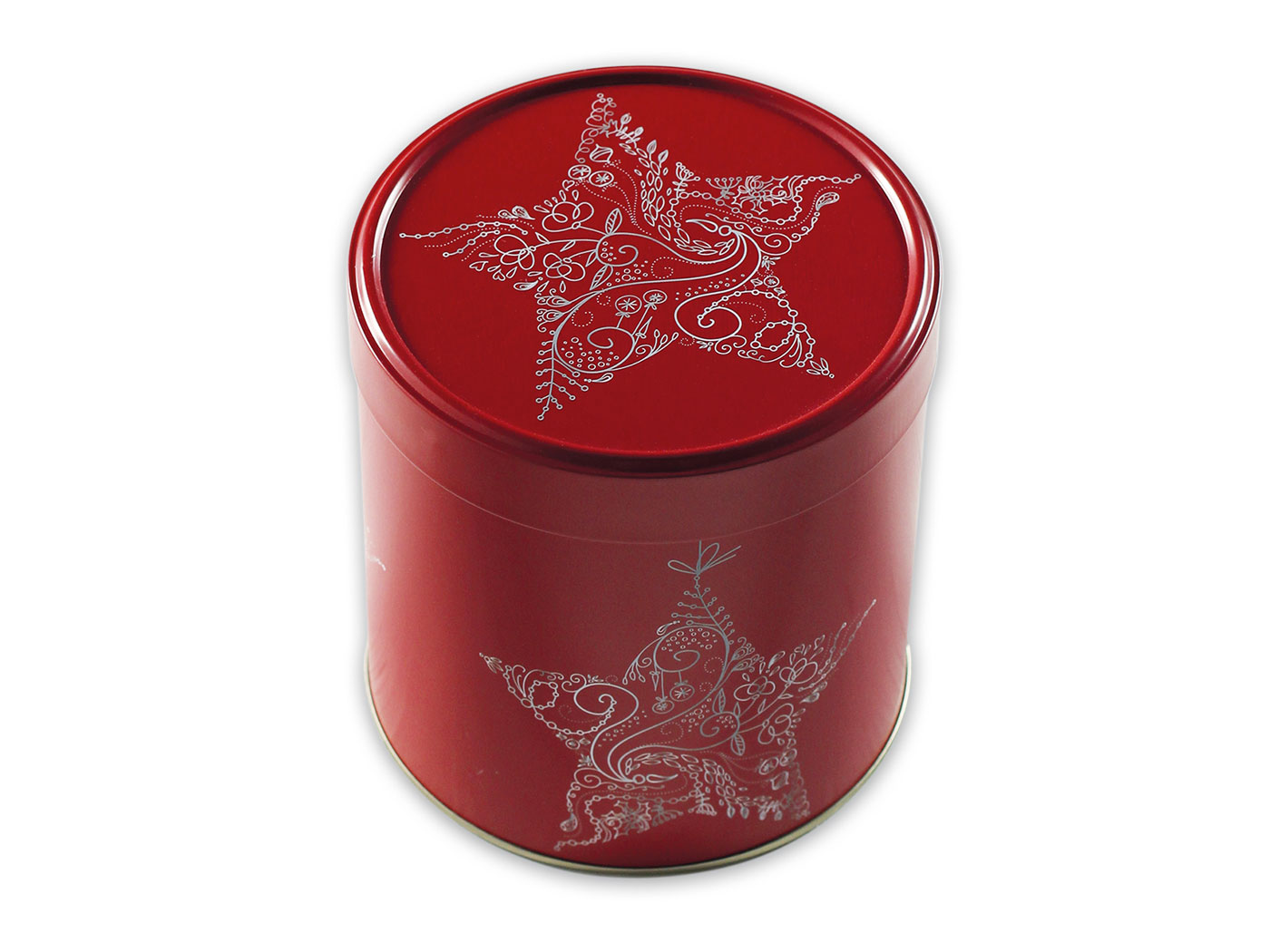 Unsere neue Lebkuchendose mit dem filigranen silbernen Stern in in einem klassischen, festlichen Rot gehalten,